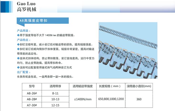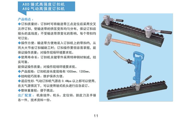 主營產(chǎn)品:運輸皮帶扣,礦用皮帶扣,強力皮帶扣手拉式訂扣機,高強度訂扣機錘式訂扣機